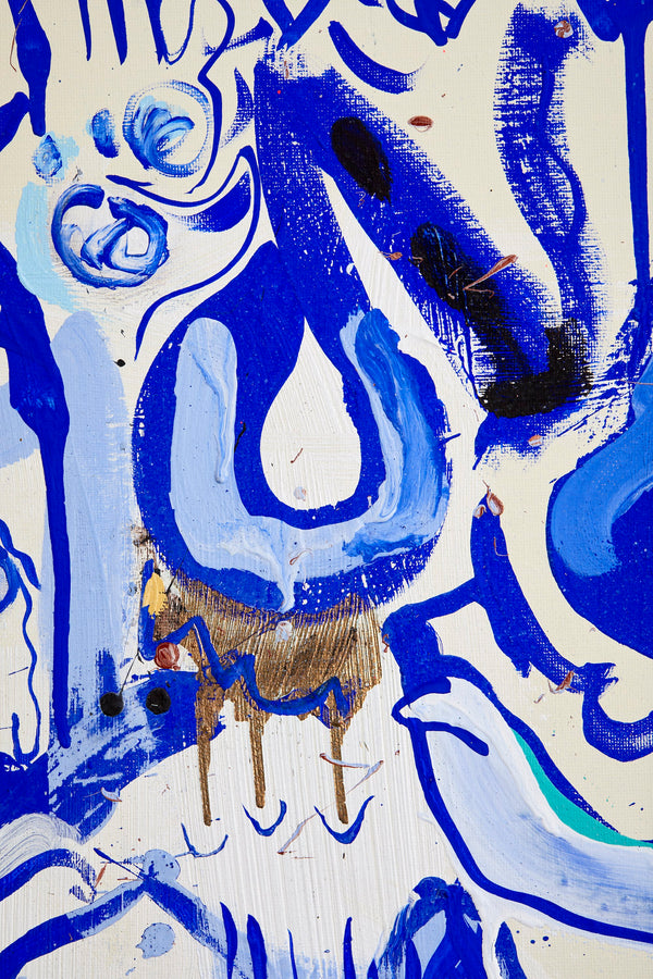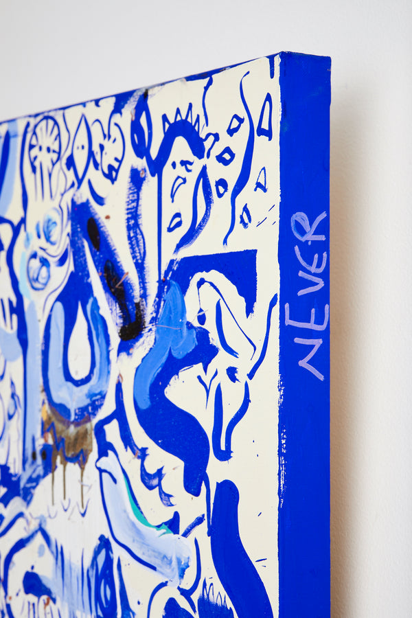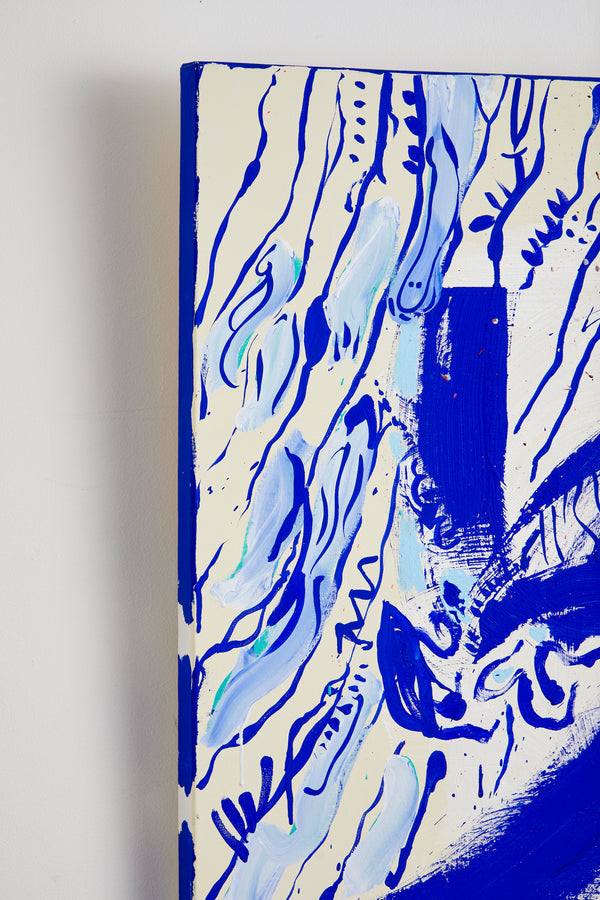 Linked by the use of a high saturate blue pigment, this series explores the way images of nature are used in ornamentation and the rules of visual language. Originally setting out to subvert the ‘Delftware’ pottery style, the core colour palette is inspired by the repetition of blue and white in the visual language of numerous cultures from Delft to Cornwall, Greece to China. Within these rules, subjects such as nature, family, memory, and myth are explored in chaotic, energetic compositions intended to surprise, even shock. The energy each piece transmits is different, and this diversity within a restricted palette has fascinated me in the development of the series. The way an emotional idea can be diffused by the familiarity of form, the way error can enhance beauty.