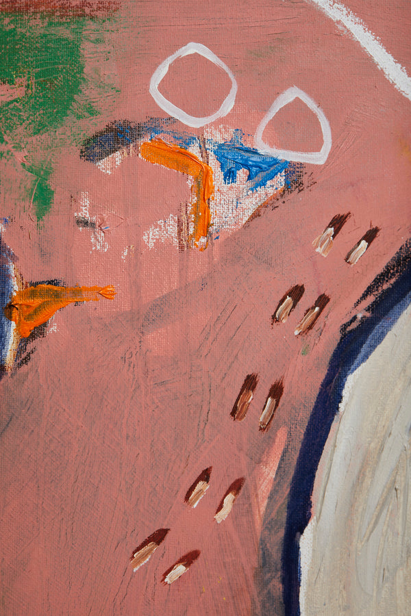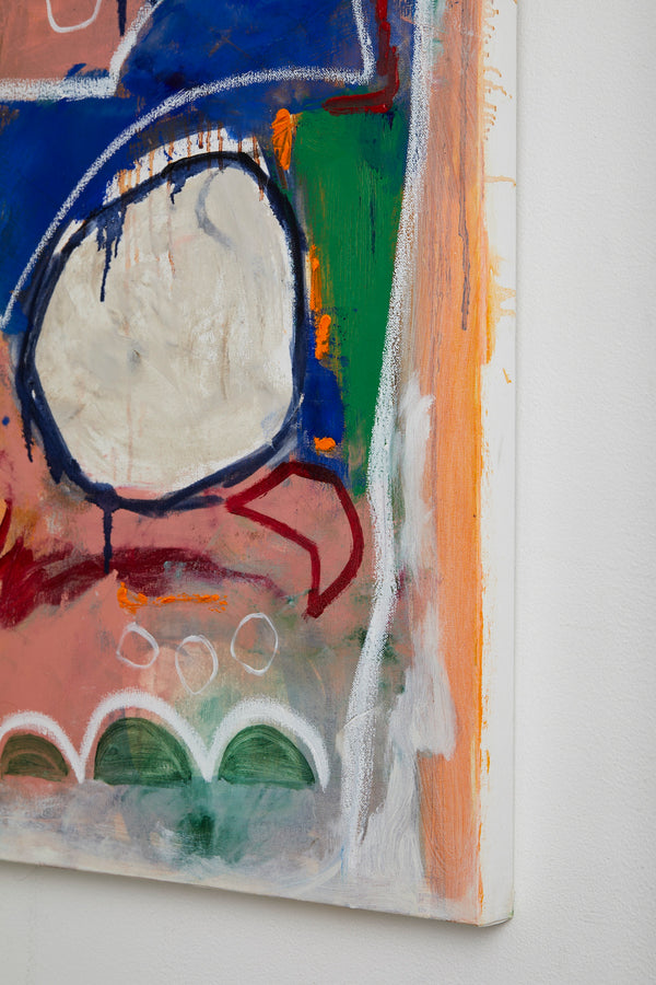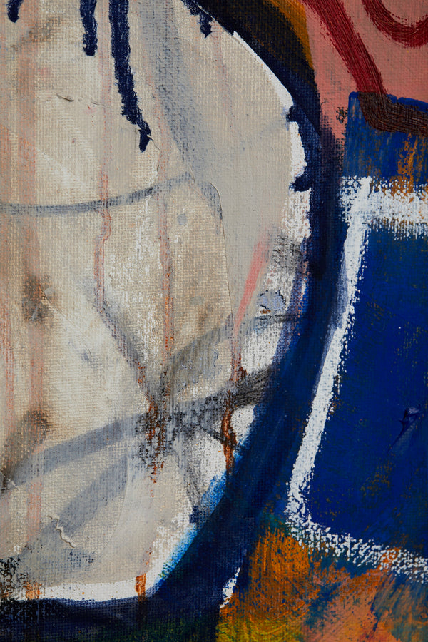 Being purposeful in promoting texture on this painting, it teases the viewers to touch the painting (when perhaps they shouldn’t) as art can be enjoyed both physically and visually. Paint is applied directly from the tube and mixed directly on the canvas. The unpredictable dynamic that follows is one that can only come with letting go and trusting the process. The use and application of an oil stick bring together the artwork, providing a new texture for the viewer.