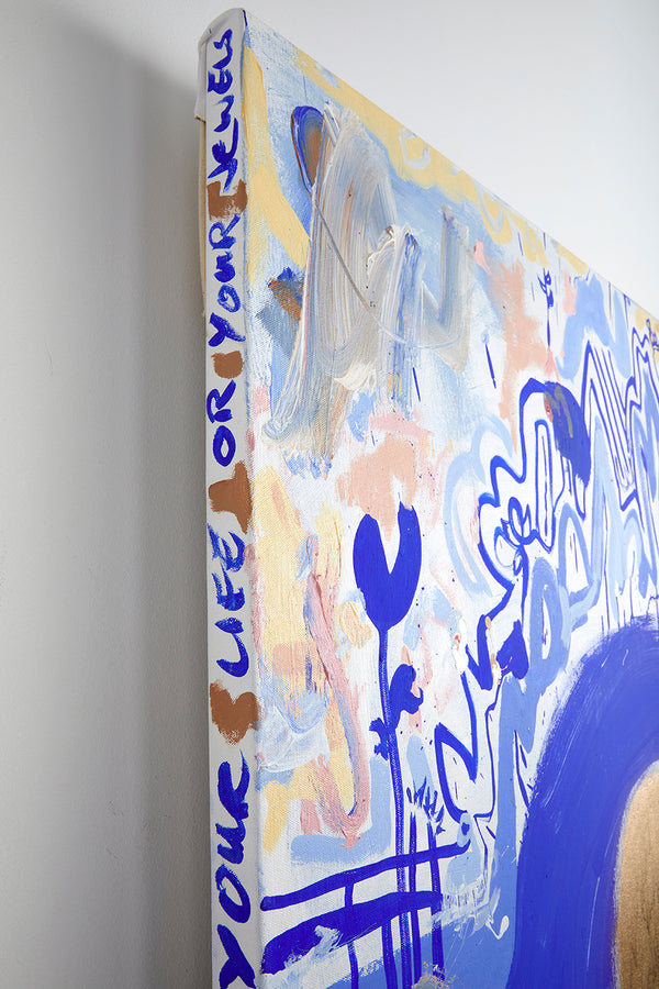 Delivery of works is directly from the artist’s studio to the buyer’s address, which places agency in the hands of the creative and minimises handling costs. This does, however, mean that shipping times cannot be provided until after purchase, but will be confirmed as soon as it is possible.