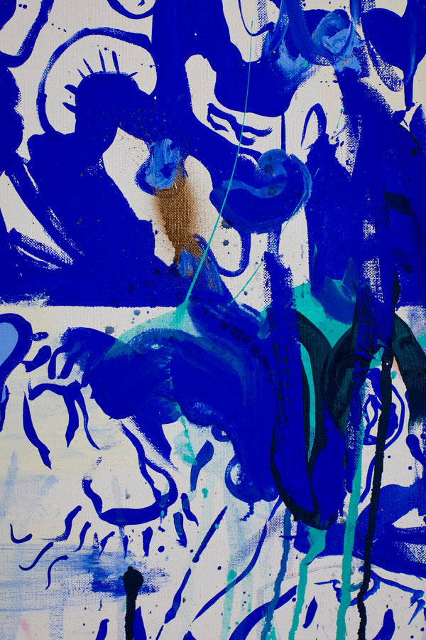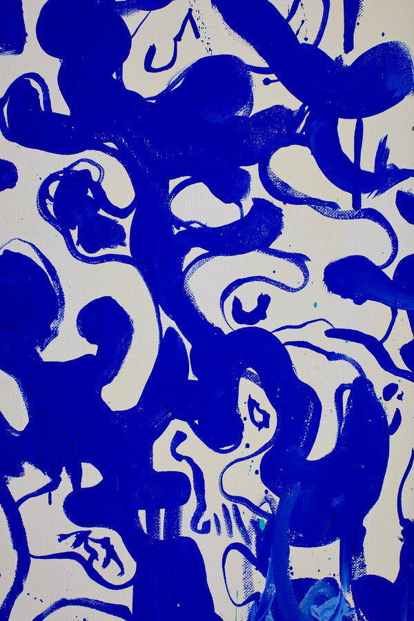 Linked by the use of a high saturate blue pigment, this series explores the way images of nature are used in ornamentation and the rules of visual language. Originally setting out to subvert the ‘Delftware’ pottery style, the core colour palette is inspired by the repetition of blue and white in the visual language of numerous cultures from Delft to Cornwall, Greece to China. Within these rules, subjects such as nature, family, memory, and myth are explored in chaotic, energetic compositions intended to surprise, even shock. The energy each piece transmits is different, and this diversity within a restricted palette has fascinated me in the development of the series. The way an emotional idea can be diffused by the familiarity of form, the way error can enhance beauty.