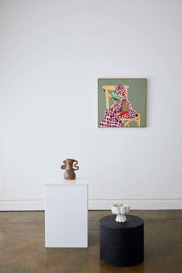 I paint moments featuring my ceramics with familiar household items. My painting practice is about the reflection of my ceramics journey and the appreciation for one's home. It is a celebration of a safe space that I have created for myself.
