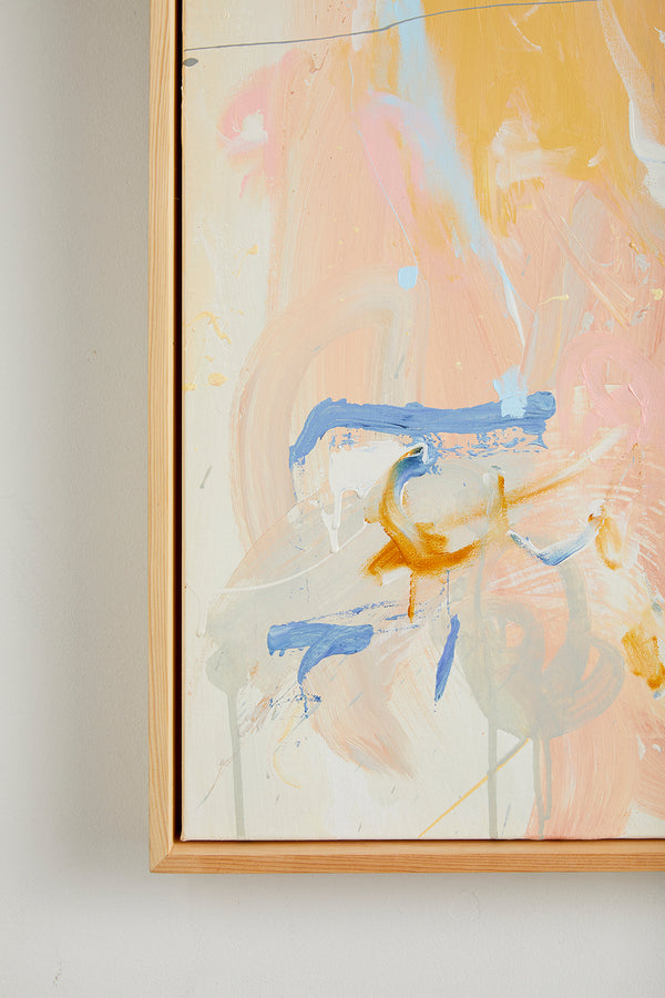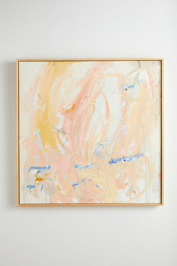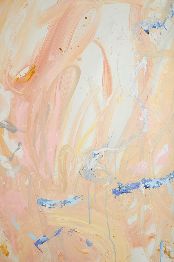 A series about optimism and renewal, Here Comes the Sun explores how we reflect on the experiences that shape us, and how, when we are open to re-interpreting them, some memories can take on optimistic lives of their own. Expressed visually with unique mark-making techniques and flicking and pouring paint allowing where it falls to inform where it is brushed next. Close up, the eye is drawn to tiny plays of colour and shape. Step back, and there is distinct energy radiated by each work, a feeling you may not be able to describe but you know to be true.