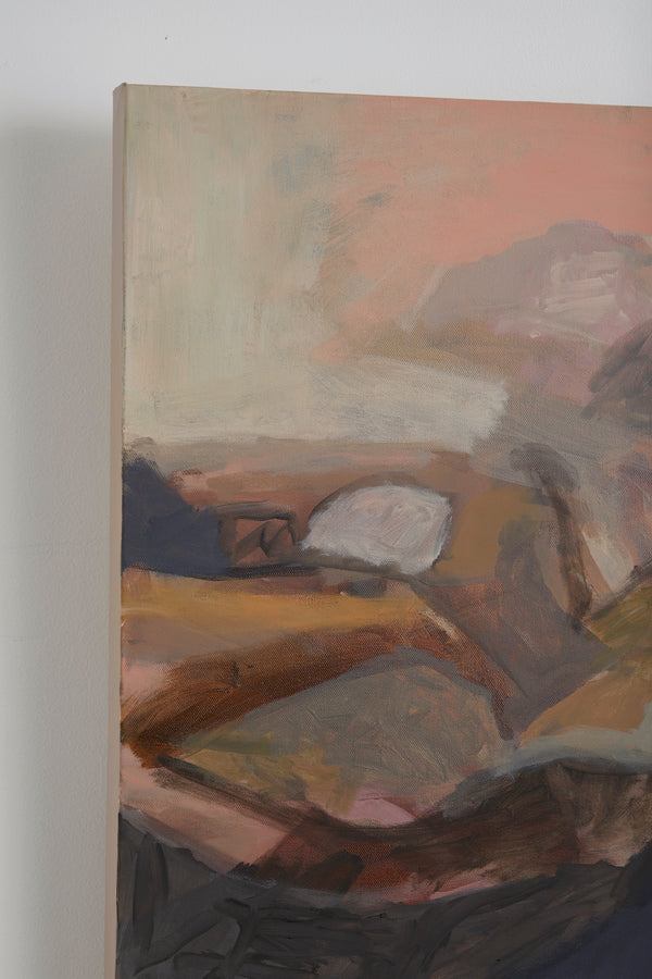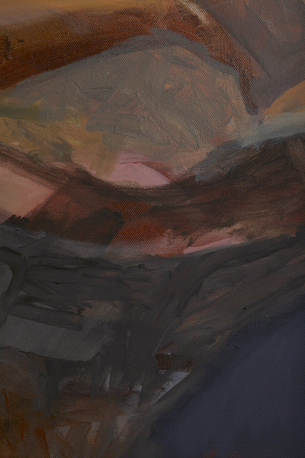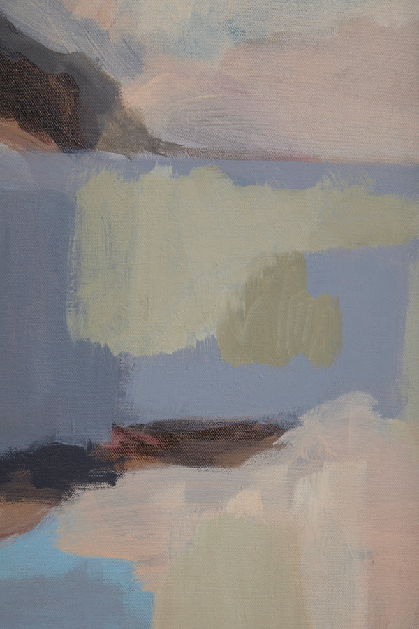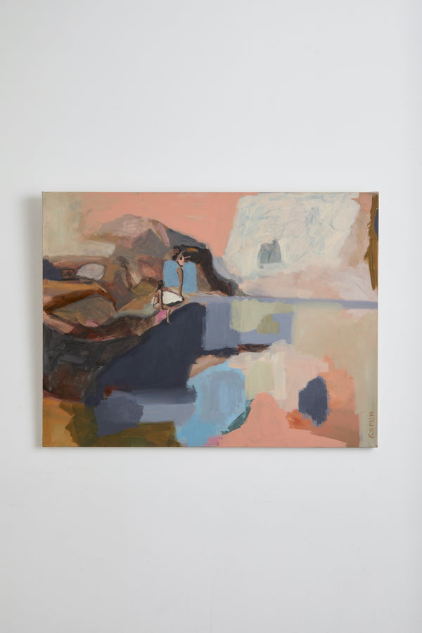 From the Paralia series, ‘The Coast’ features two female figures staring out onto the horizon. They stand upon a rocky headland. The emotive strokes of the abstracted landscape is juxtaposed with the detailed figures. A signature of Esplin's style. The size of the figures speak to our relationship with nature.