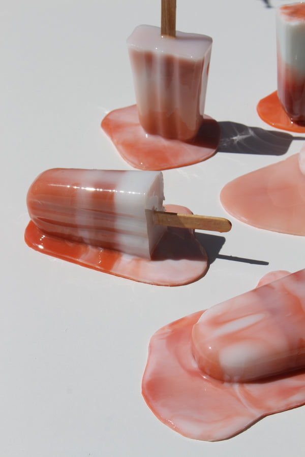 These sculptures came from the idea of childhood and are a reminder to cherish each moment. Just like time has passed, the ice pop has melted, but we still hold the memory.
