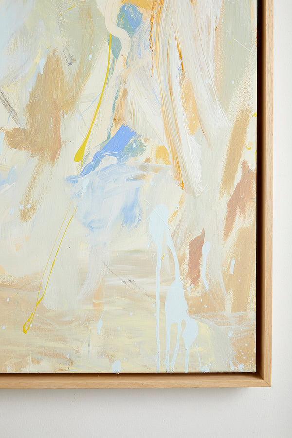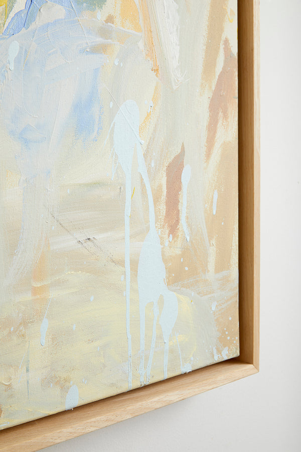 A series about optimism and renewal, Here Comes the Sun explores how we reflect on the experiences that shape us, and how, when we are open to re-interpreting them, some memories can take on optimistic lives of their own. Expressed visually with unique mark-making techniques and flicking and pouring paint allowing where it falls to inform where it is brushed next. Close up, the eye is drawn to tiny plays of colour and shape. Step back, and there is distinct energy radiated by each work, a feeling you may not be able to describe but you know to be true.